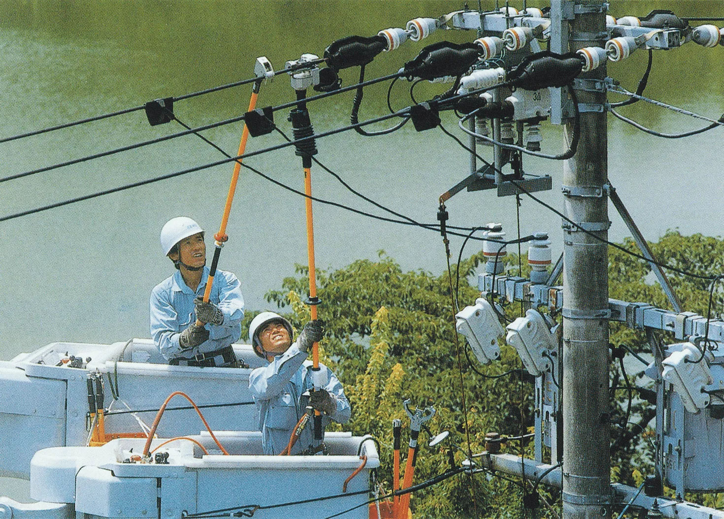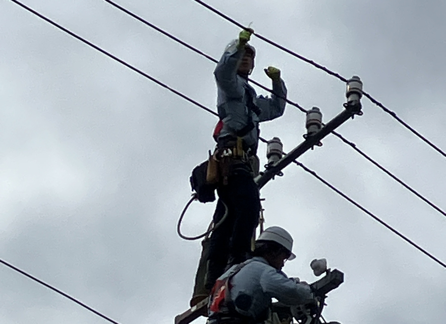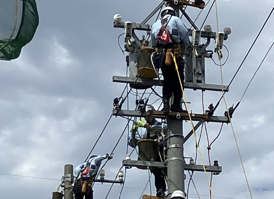 ◎電柱に胴綱をつけて登ることがありますので、高所作業に耐えうる人を希望します。
